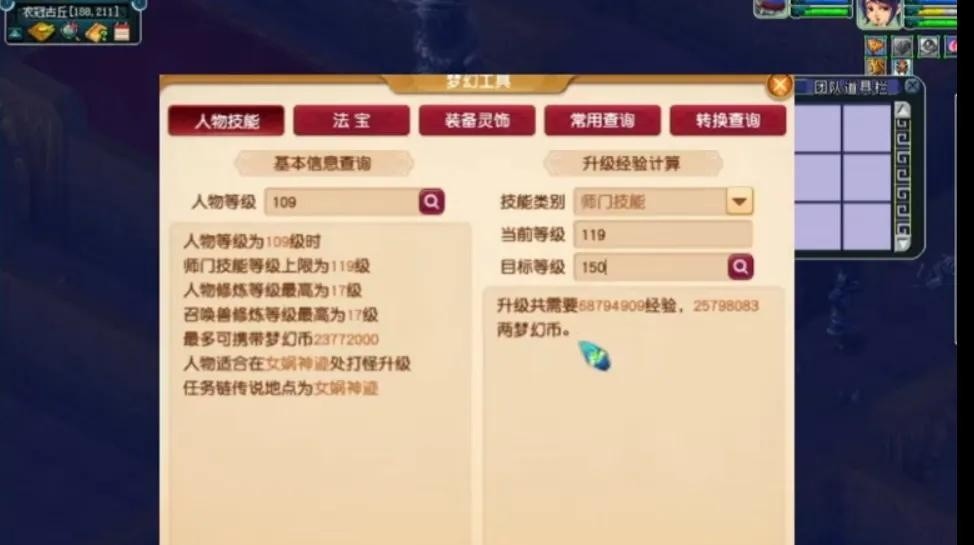 此工具是你的梦幻升级路上的得力助手,它能计算升级、学习技能或修炼所需的经验,以及点技能所需的储备金等信息,所有信息一目了然,帮助你规避弯路,更加高效地驰骋于梦幻西游的世界。
