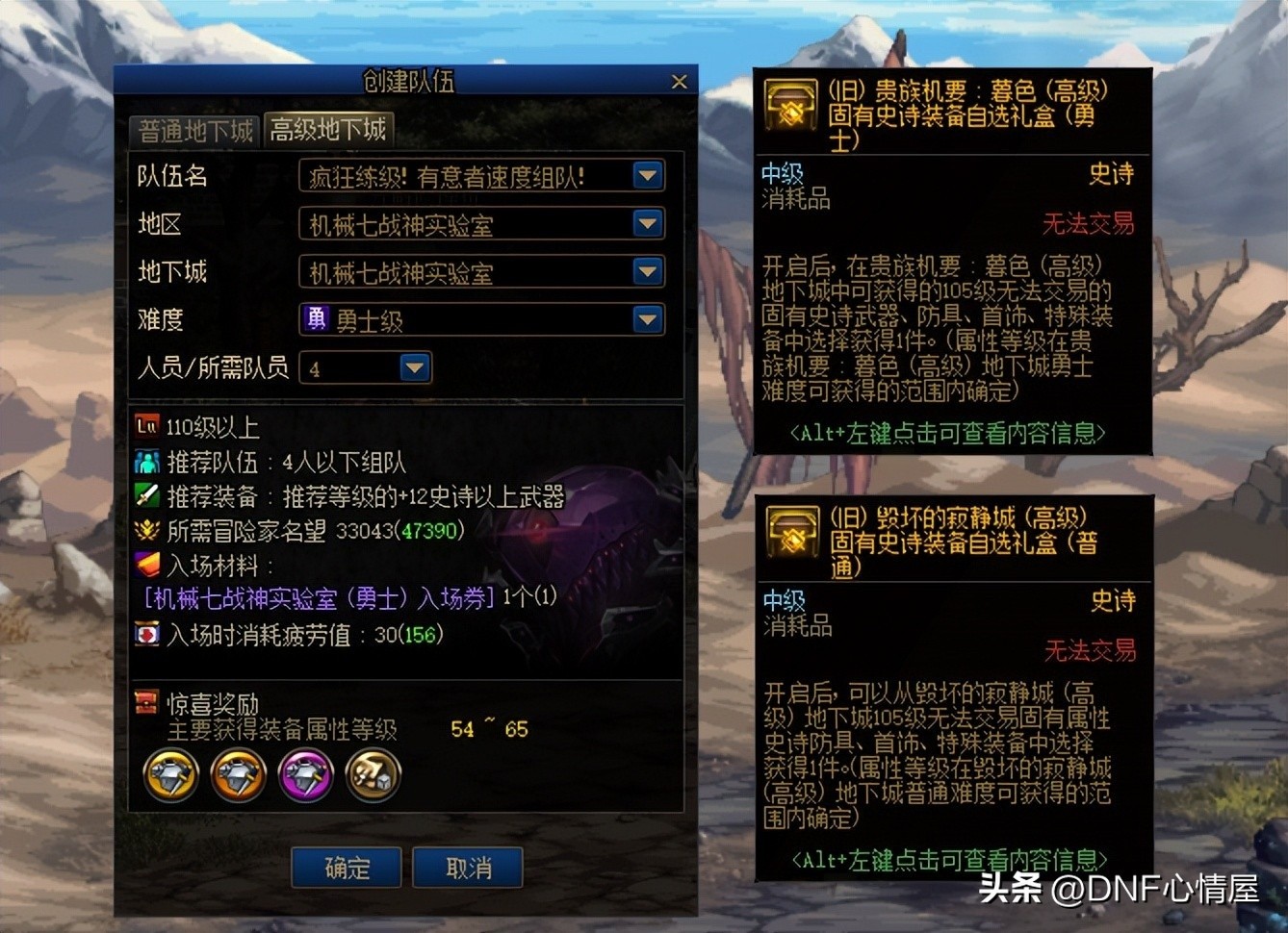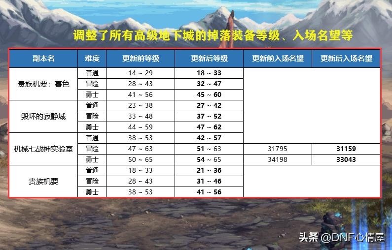 随着游戏进入版本末期,高级地下城的装备掉落等级和入场名望值进行了相应的调整,虽然这是为了顺应游戏进程,但这些调整可能并未完全满足玩家的期待,值得注意的是,已拥有的高级装备自选礼盒将添加“旧”标识,打开后的装备等级仍为调整前的状态。