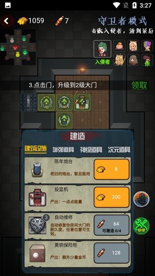 - 点击准备开始匹配,自动分配角色,若为保卫者,则选择合适房间,升级装备,打造坚固防线,通过升级装备与铁门,成功抵御猎梦者的追击。