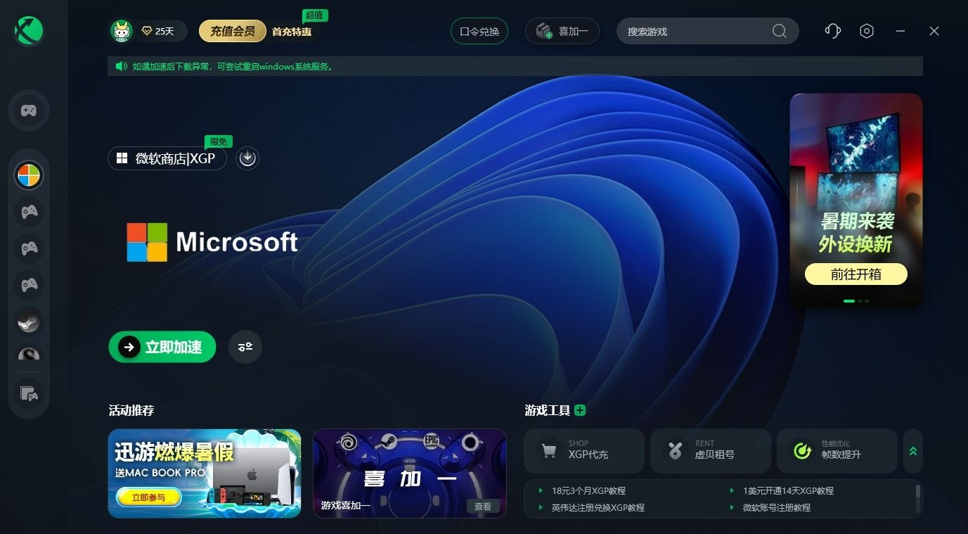由于微软的服务器位于国外,国内玩家在连接微软服务器时可能会遇到延迟问题,为确保成功登录微软并开通XGP会员,您需要借助游戏加速器,推荐使用迅游加速器等稳定网络环境,现在输入特定口令,还可获得免费加速时长哦!