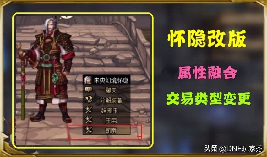 在云上长安门口的NPC怀隐处,新增了司南选项,点击进入后,两大全新功能等待玩家探索:属性融合和交易类型变更。