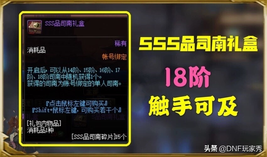 - 对于挑战14-18级副本的玩家,将有机会获得SSS品司南碎片,只需15个碎片即可兑换一个SSS品司南礼盒,有机会随机获取最高的18阶司南。