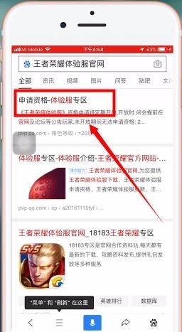 通过百度搜索“王者荣耀体验服官网”,点击官网链接,直达体验服专区。