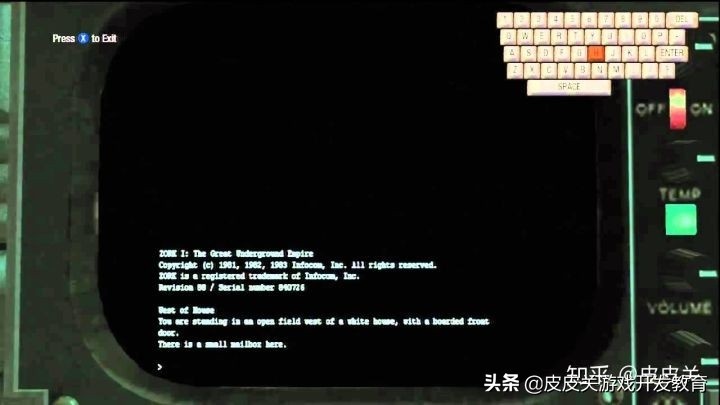 在这款游戏中,当你从椅子上站起来后,能通过场景中的一台CIA计算机游玩一款叫做Zork的文字冒险游戏,你还可以在这里体验到一款完全不同的双摇杆射击游戏DeadOpsArcade,这种类型的游戏在80年代初期是非常流行的,它们承载着时代的烙印。