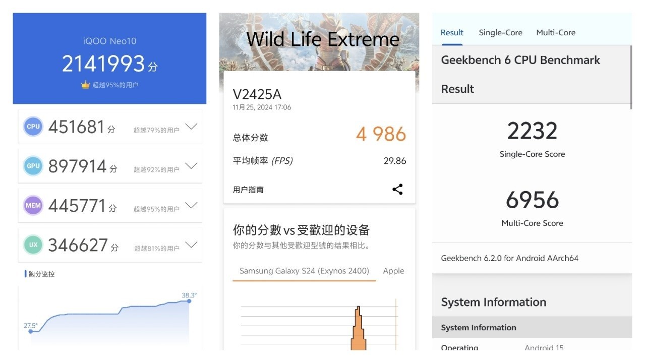 在续航方面,Neo10配备了一块等效6100mAh的蓝海双芯电池,确保长时间的使用需求,更令人惊喜的是,手机还支持120W超快闪充,从0%电量充至100%仅需33分钟,Neo10还具备直驱供电功能,有效避免高负荷游戏过程中的过热降频现象,保持稳定的帧率表现。