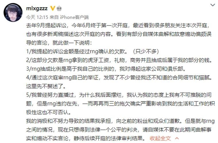 RNG欠薪后续揭秘,Mlxg揭露合同猫腻,正面回应开庭真相