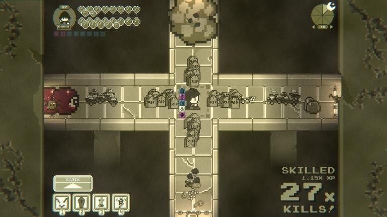 这是一款体量最小的作品之一,玩法简单直接,只需控制一个小人在十字路口发射远程弓箭射击四个方向袭来的敌人即可,游戏音乐音效完美展现出了8bit时代的特色,看似简单,实则非常考验玩家的反应能力和预判能力。