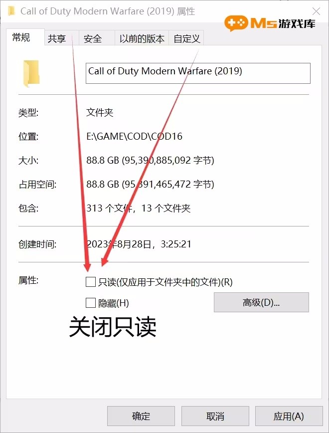 - 关闭游戏文件夹的只读属性。