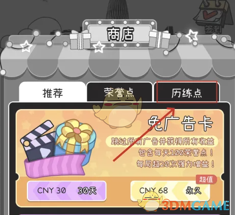 - 在商店页面,你会看到下方的历练点栏目,点击进入该栏目。