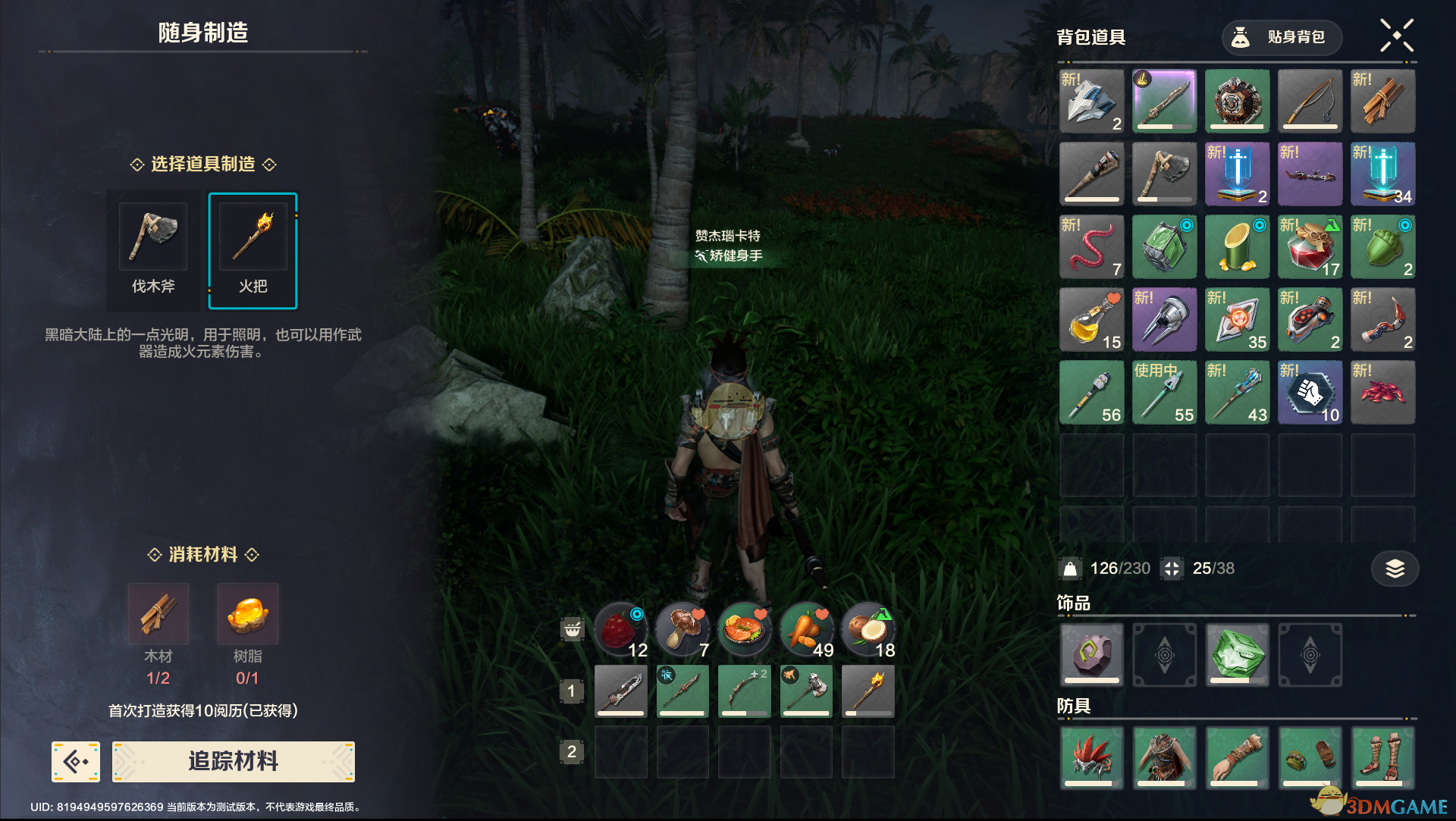 夜晚作战时,玩家会受到寒冷的负面Buff影响,这会增加耐力消耗并降低攻击力,建议玩家在夜晚利用随身制造功能制作火把以驱散寒意,举起火把时仍可使用单手武器进行战斗,为避免夜晚战斗的损失,可以选择在原地建造床和篝火进行休息。
