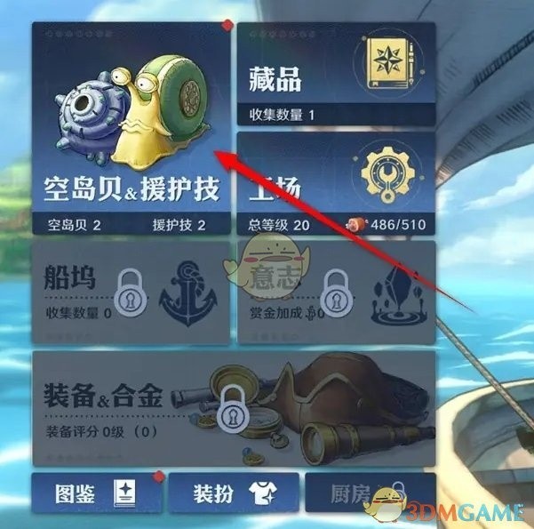 - 在菜单栏页面,点击“空岛贝”选项,进入技能详情页。