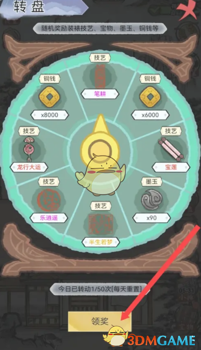 - 转盘抽奖:进入游戏主界面,在右侧找到并点击转盘,进入转盘抽奖页面,在转盘抽奖页面,点击下方的领奖按钮,每日最多可领50次,这是一个获取红梅花纹技艺的重要途径。